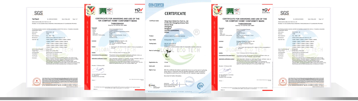 東莞全球環(huán)??萍加邢薰究偛课挥跂|莞東部地區(qū)、公司致力于全生物降解材料和全生物降解秸稈復(fù)合材料的生產(chǎn)研發(fā),專業(yè)提供全生物降解 CCBM系列材科,PBAT、PBS、PLA樹(shù)脂及全生物降解膜袋、筒膜、餐具覆膜、阻隔膜、復(fù)合包裝膜、衛(wèi)生巾膜等產(chǎn)品。給塑料制造商和消費(fèi)者提供一站式全品類的解決方案和技術(shù)支援。產(chǎn)品已通過(guò)德國(guó)DIN CERTCO、歐洲TUV公司OK compost HOME認(rèn)證、國(guó)標(biāo)認(rèn)證GB/T19277.1-2011:符合歐盟EN13432、美國(guó)ASTMD6400、 BPI、澳洲ABA堆肥降解檢測(cè)標(biāo)準(zhǔn),并通過(guò)SGS公司檢測(cè)的FDA食品接觸安全測(cè)試、ROHS有害物質(zhì)檢測(cè)、REACH檢測(cè)。我司獲得國(guó)家高新技術(shù)企業(yè)認(rèn)證、通過(guò)了GRS驗(yàn)廠并且取得了GRS認(rèn)證,產(chǎn)品熱銷于歐洲、美國(guó)、亞洲等30多個(gè)國(guó)家。